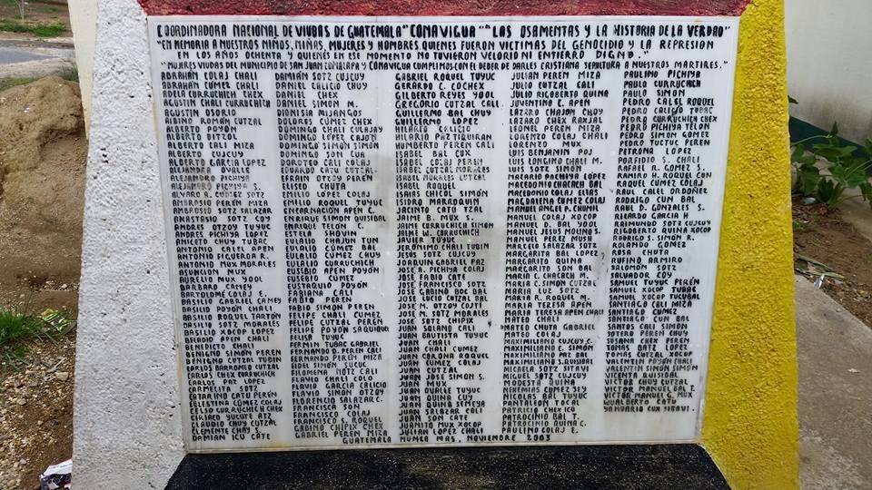 Historical memory mural section in San Juan Comalapa, Chimaltenango (July 2015)Historical memory mural section in San Juan Comalapa, Chimaltenango (July 2015)Historical memory mural section in San Juan Comalapa, Chimaltenango (July 2015)Names of Victims during the genocide, from San Juan Comalapa, Chimaltenango (July 2015)Plaza Central, San Juan Comalapa, Chimaltenango, Guatemala (July 2015)Plaza Central, San Juan Comalapa, Chimaltenango, Guatemala (July 2015)Copán Ruinas, Copán, Honduras (July 2015)Central Plaza, Copán Ruinas, Copán, Honduras (July 2015)Guacamaya (macaw), Parque Archeológico de las Ruinas de Copán (Archeological Park of the Copan Ruins), Honduras (July 2015)